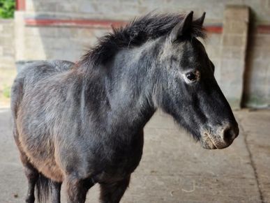 Blue unfortunately has an unknown history however exhibits old habits and signs of being abused. With fast movements towards him Blue can sometimes back away. However, he is a lot more trusting and is such a friendly, happy pony especially around young children.